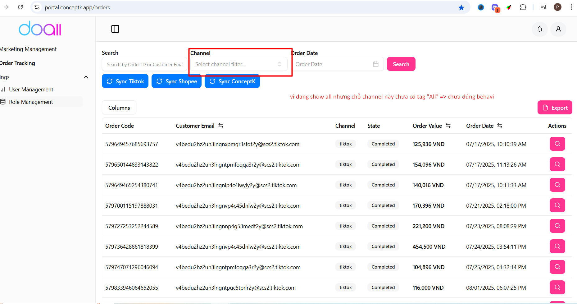Vì khi vào order mặc định đã show All => Nên chỗ fillter cần auto selected tag "all" là mặc định
