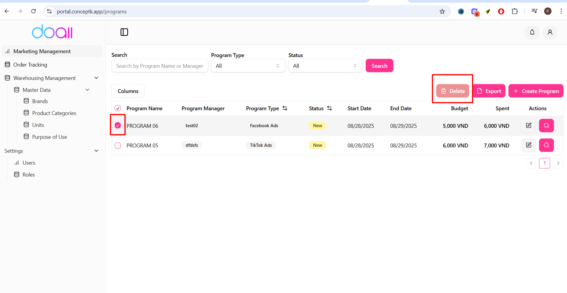 - xóa xong => sẽ thấy nút delete vẫn còn enable dù chưa selected item nào